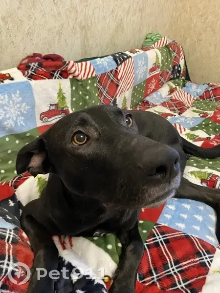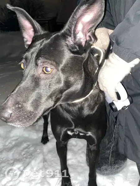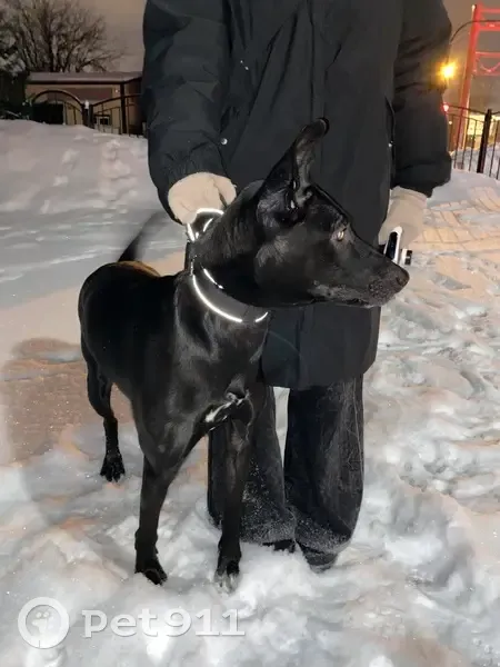 Черная, без породы. Обучена командам, контактная. Сидела привязанная на улице. Не любит, когда ее ругают, упитанная, ухоженная. Чипа нет Рост в холке 64см, по размерам схожа со взрослым доберманом. Возможно, пропала в новогодние праздники, так как боится громких звуков (может, сбежала от салютов)