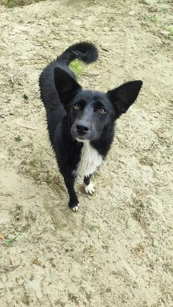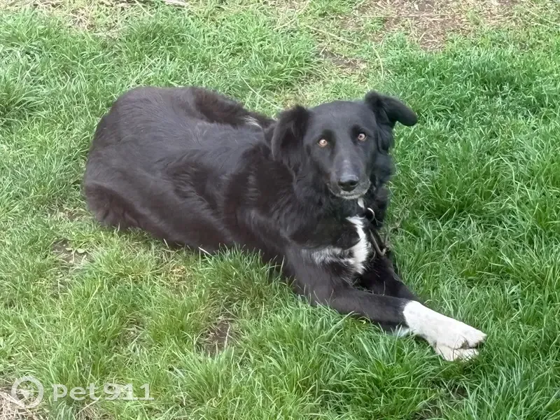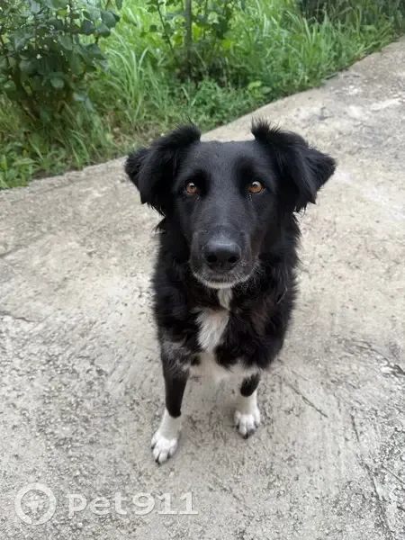 Черный, лохматый, более 25 кг., Белый галстук, переходящий в манишку, носочки белые на всех лапах и кончик хвоста белый. Ошейник новый из коричневой кожи. Сбежал утром. 89183204186