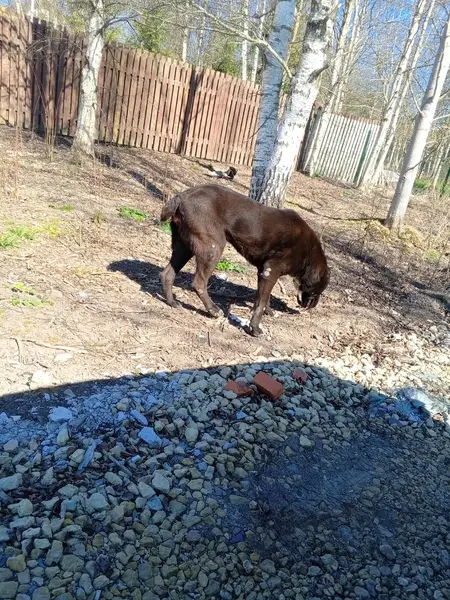 Глаза как будто гнойные, собака стояла и смотрела, немного погавкивала, будто выла, шла слабо, будто очень устала, постояла у остановки, потом ушла за канаву, к какому то складу контейнеров