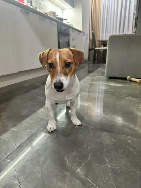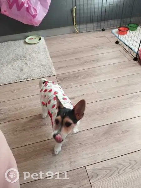 Джек Рассел терьер щенок девочка 8 месяцев. Уши стоят. Зовут Дина. Окрас черно белый, мордочка трёхцветная. На спине шерсть пушистая. Морда гладкая.
