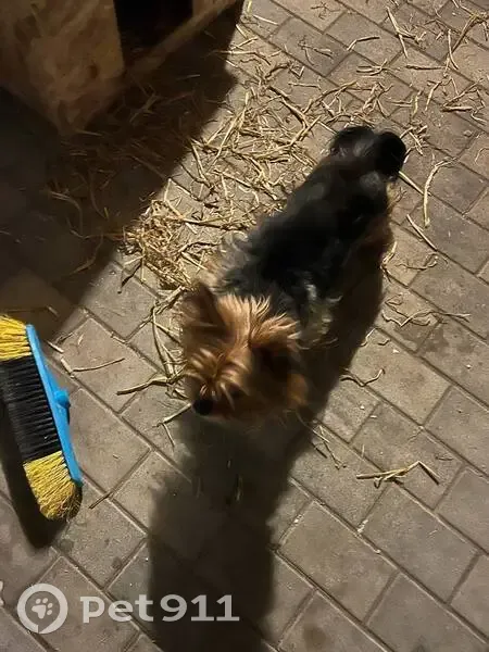 Здравствуйте! Собака пришла на участок. Испугана, замерзшая. Придержана. Йоркширский терьер, черный с коричневым.