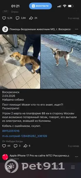 Пропал Арчи, мальчик добрый привык к людям, поэтому не боится. На нем черный ошейник. Окрас рыжий с черным.