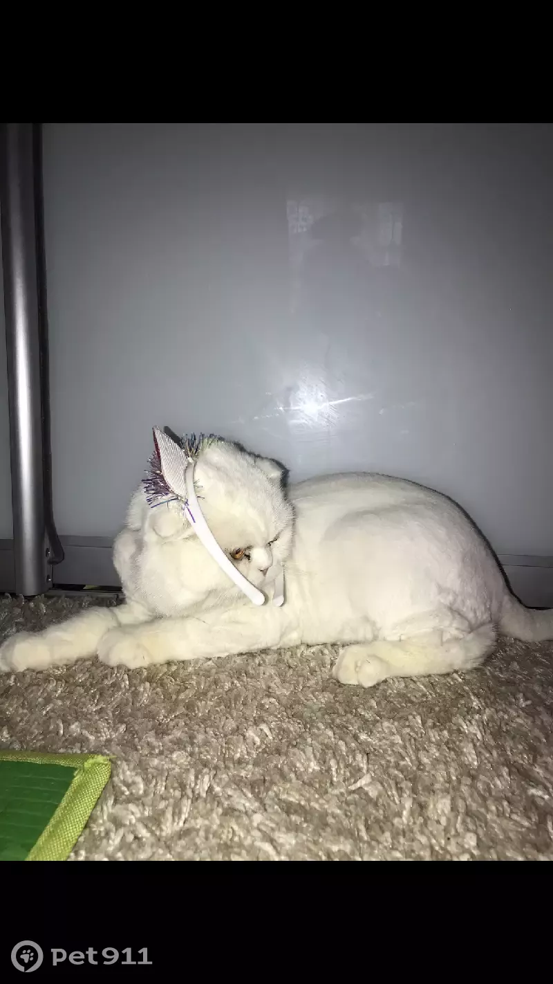 Потерялся кот, белоснежный вислоухий шотландец, на передних лапка