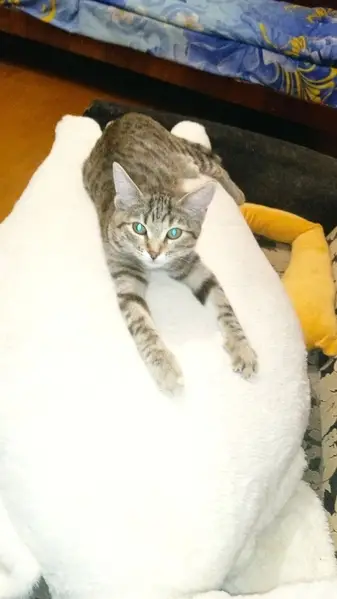Нашла котика на дороге, бросался под все машины и автобусы, очень был испуган.Принесла домой ,Голодный, очень долго и жадно ел, Потом долго обнимала , гладила, говорила, что ни за что не брошу. Котяш успокоился и даже спать лег на диване...Если хозяин не откликнется, то оставлю себе, уже полюбила котяшу!.