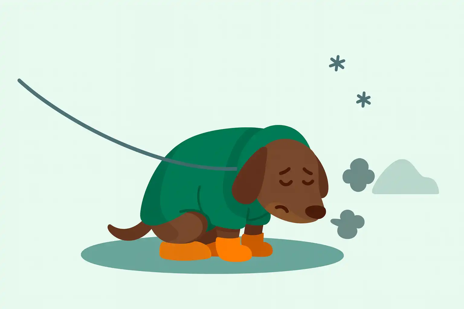 Лучше несколько коротких выходов, чем один длительный. Избегайте раннего утра и позднего вечера — это самое холодное время суток. При -10°C и теплее — обычный режим; от -10°C до -20°C — сокращайте время вдвое; ниже -20°C — только для туалета.