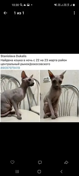 Пропала кошка Сфинкс, серо-розового цвета, Луговое