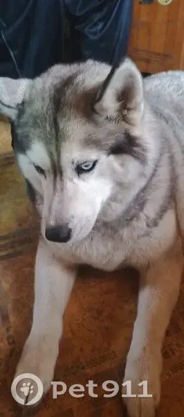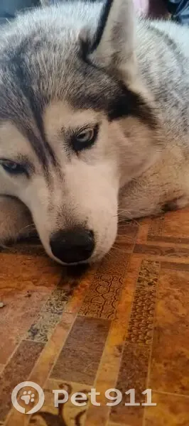 Серая хаски, глаза разного цвета, на свосте ближе к попе черное пятнышко. Лежала в магазине, на ней зеленый ошейник. Там очень большое движение машин приняли решение забрать пока к себе .