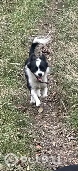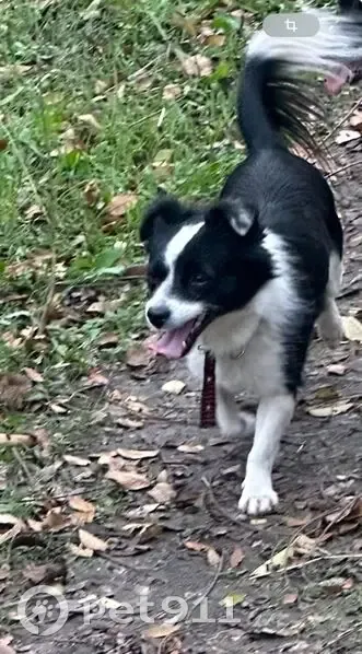 Пропала в новогоднюю ночь испугалась салютов. Маленькая собачка, черно-белая, пушистый хвостик и кудрявые ушки. Ошейник чёрный с красным узором. Она очень пугливая
