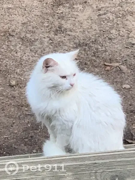 Объединено с объявлением rf1022229. Причина-дублирование информации. Описание дублирующего объявления: Белая пушистая кошка в розовом ошейнике, который ей мал, бродит меду домиками базы отдыха и видимо давно. Голодная и уставшая, побирается. Уши в клещах и расчесах до крови. Кошка в опасности!! Сразу после нее к нам из леса вышел лис и долго сидел ждал шашлык. Кошка предположительно глухая, что делает ее легкой добычей. Поймать не удалось, накрыли одеялом, но она отчаянно брыкалась и вырвалась, но приходила еще пару раз за едой. Сачка у нас не было. Очень жалко бедолагу.