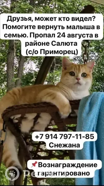 Рыжий окрас ,кончик хвоста чёрный в полоску
