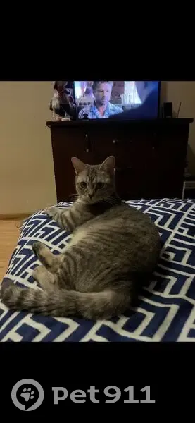 Кошечка «МИЯ» сбежала с дому, открыли дверь и выбежала. До этого такого не было. Окрас как видно на фото она светлая и полосатая, вытянутая, худенькая и большие красивые глаза. К чужим людям остерегается. Пожалуйста кто видел сообщите Район Змеинка