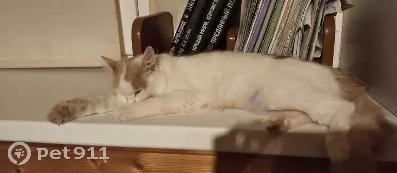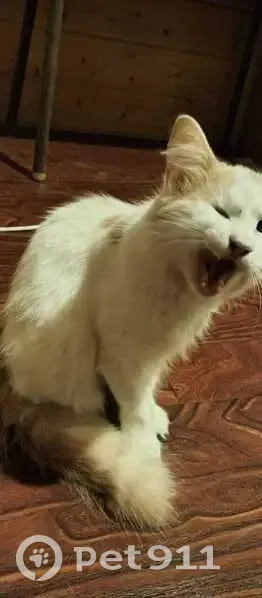 Белая с рыжими пятнами. Нет одного глаза на второй она слепая. Убежала из за того что бабушка дверь не закрыла живём в частном доме. Она не особо игривая и к людям подбегает не часто особенно к незнакомым