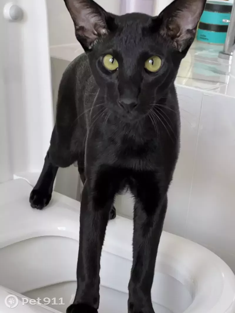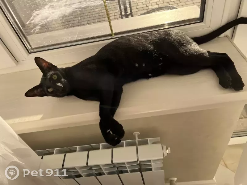 Кличка Мёрфи . Чёрный окрас . Худощавое телосложение . Порода ориентал. Кот домашний . Улицу не знает . Открыла окно проветрить дом и не заметили как выпрыгнул . Спустя час начали искать . Проверила видео на территории лн перелез через забор . Куда он ушёл не видно на видео . С 14:30 домой не возвращался