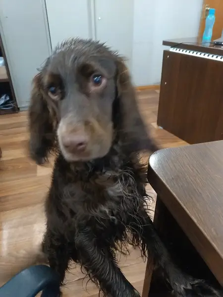 Собака темно коричневого цвета породы спаниель, подстриженный ухоженный, знает команды. На ошейнике медальон в виде косточки с номером телефона. Пропал 13 августа около 15 часов в районе деревни Прохорово в лесу в сторону баландино