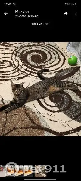 Кот полностью полосатый, низ пузика рыжий. Под подбородком белая полоса. На правом боку круглый след от травмы. На руки к людям не идёт, был рождён в подвале. Имя Пират знает, в лоток ходит. Может прибиться к другим котам. Может шипеть, рычать и прятаться. Но на самом деле он большой бояка и если его взять - даже не пытается царапаться или кусаться.
