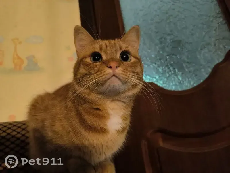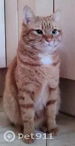 Рыжий гладкошёрстный кот Коржик, небольших размеров. Правый глаз слезится, щурится им. Белый подбородок, немного белые грудь и животик. Полосатые передние лапки. Домашний, очень пугливый, к незнакомому не пойдёт. Впервые вышел на прогулку, от испуга вырвался из шлейки и убежал около северной стороны дома по ул. Ленина, 34 через парковку в лес. Пожалуйста, сразу сообщите, если увидите, в любое время суток! Не ловите, он убежит! Поделитесь со знакомыми. Нашедшему денежное вознаграждение.