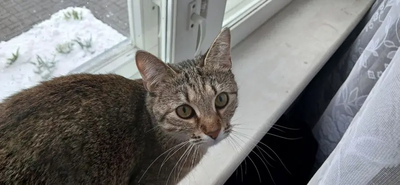 В этом районе бегает кошечка, серенькая, полосатая, очень замерзшая, не дикая, но осторожная, в руки сама на бежит, может напугана, растеряна. Похожа на домашнюю. Подвала не понимает. Найдись хозяин.