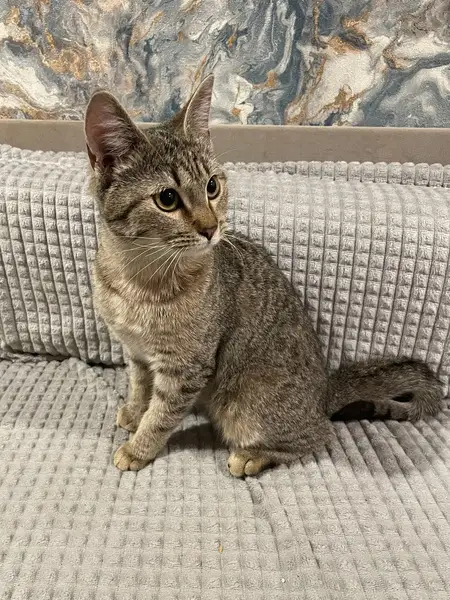 Не большая, меньше обычной кошки в размере, худенькая, окрас как на фото. Не обычные черты мордочки.Домашняя, улицы не знает. Ласковая, но пугливая. Ушел на работу, а когда вернулся увидел вырваную сетку на балконе и пропажу Милки. Упала с четвертово этажа и убежала по всей видимости от испуга.