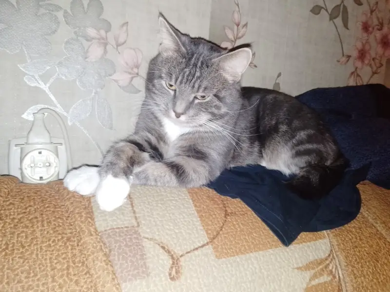 Нашли молодого кота с ошейником,во дворе своего дома,временно взяли на передержку, на совсем оставить не может,т.к .у самих 2 кошки.Кот серый с чёрными полосками,ходит в лоток.