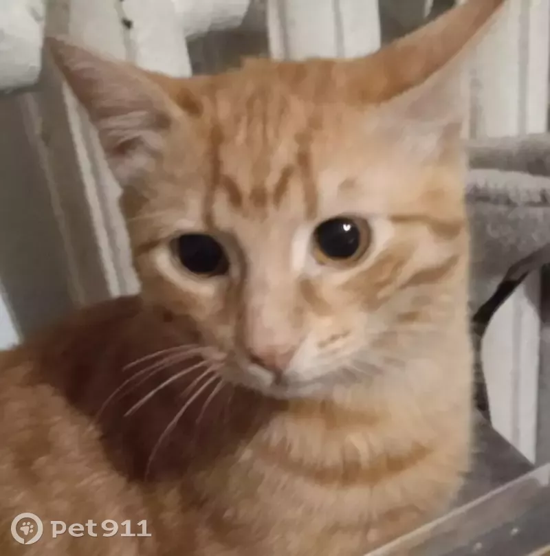 Рыжий полосатый кот с коротким купированым, видимо из-за травмы, хвостом( крючком на конце). Добрый, ласковый, но пугливый. Молодой, первый загул, выпросился на улицу под присмотром, не уследили - убежал.