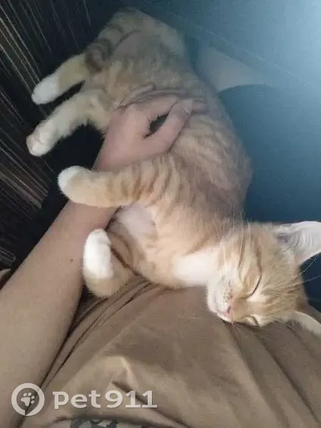 Пропал 13 сентября. Окрас рыжий, полосатый. Белые «перчатки», манишка, щёки с подбородком и кончик хвоста. Глаза янтарные. Особая примета: на правой передней «перчатке» рыжее пятнышко. Мальчик, месяцев 4-5, на имена не отзывается, зовут Кот. Игривый, любит кусаться. Очень любит внимание, достаточно послушный, но озорной. Знакомая подсказала, что видела маленькую девочку, подобравшую кота у Пятёрочки в Д 21.