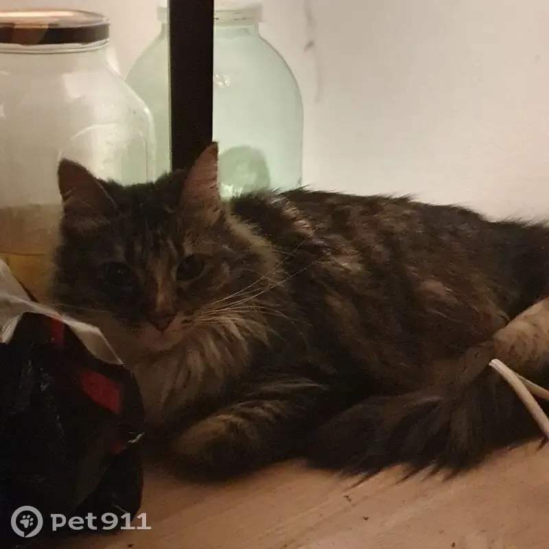 Найдена кошка, Сапёрная улица, Пушкин - полосатая и пушистая с белой грудкой