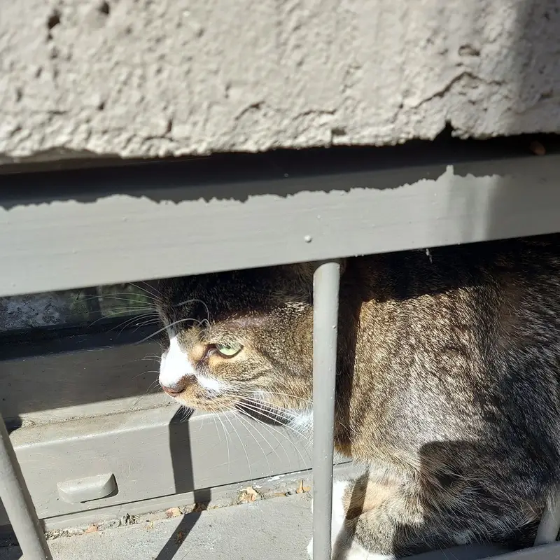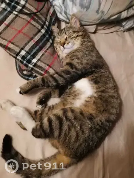 Кот. 5 лет. Серый пятнистый, на лапках полоски. На мордочке ассиметричное белое пятнышко, больше слева на щёчку. На передних лапках белые носочки, даже, скорее, "следочки", - белые только пальчики. Есть сведения, что похожего кота, раненого или сбитого подобрали и увезли на машине.