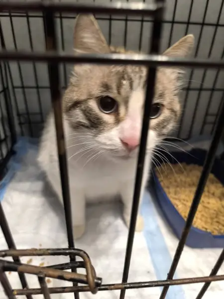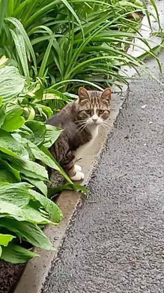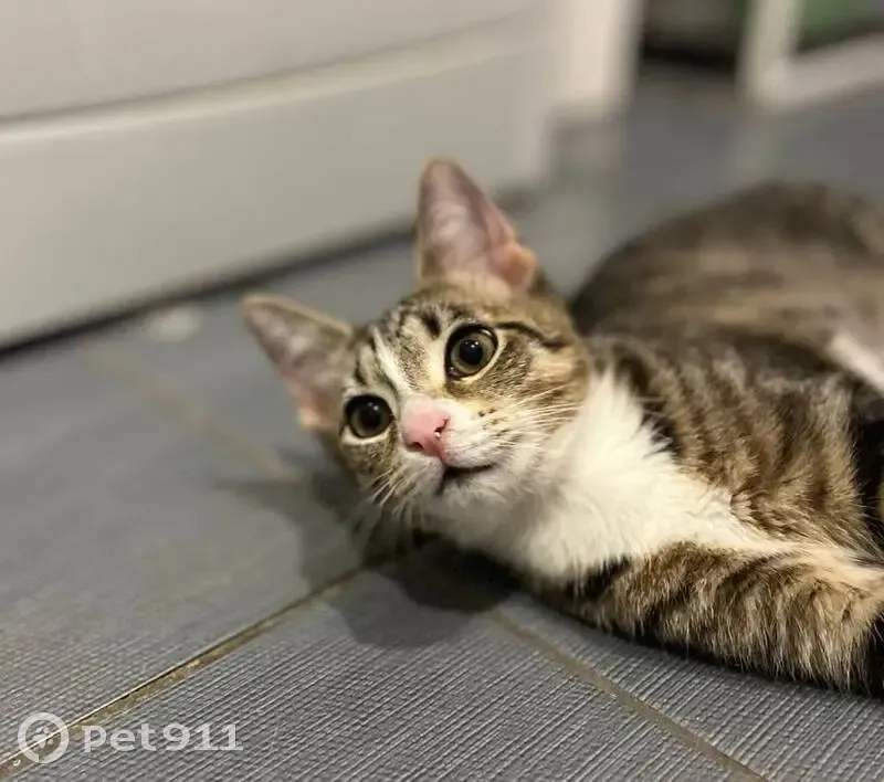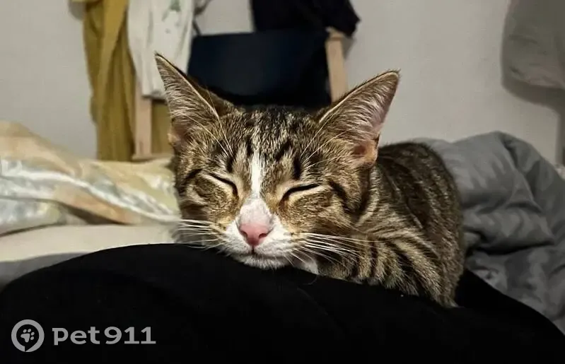 Размер меньше среднего, коричнево-полосатый окрас, белая грудка, нос и подушечки лап. На животе мог сохраниться зеленый окрас после стерилизации, шерстка скорее всего уже заросла. Может откликаться на имя Зо'ла.