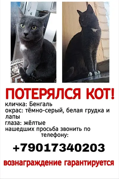 Кот британской пароды был найден 2 декабря в районе улицы Гагарина. Кот домашний, ласковый.