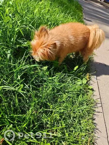 Пострижен, похож на шпица/йоркширского терьера, рыжего окраса, без амуниции. Ухоженный, без владельца и амуниций. Потерялся или самовыгул?