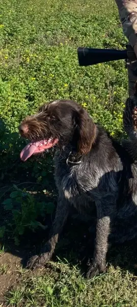 Похоже порода Дратхар. Пёс ухоженный. Явно домашний. С ярким ошейником. Прибился к стае бродячих. К чужим не подходит.