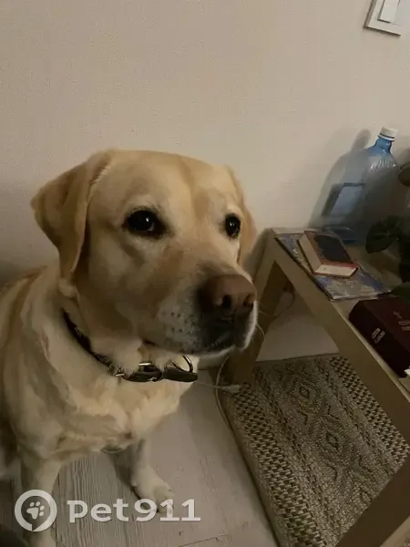 Лабрадор, 5 лет, окрас палевый, к людям относится дружелюбно, на ней одет кожаный коричневый ошейник, на животе цифры 3004, сбежала в середине 30 ноября