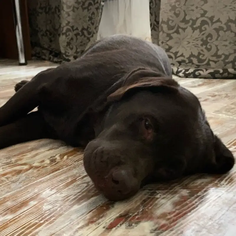 Лабрадор, окрас черный, возраст 10 лет, добрая, отзывается на кличку «Берта»