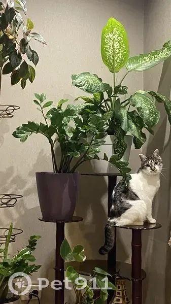 Кошка Мурыся 3 года. Стерилизованная. Белая, с темно- серыми пятнами. Ушла со двора на ул. Новая 30, кВ. 2 с. Пятиречье , Сахалинской области. Очень добрая кошечка