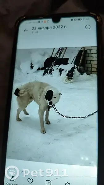 Старый пес белого окраса с черным пятном на половину морды. Почти не слышит и плохо видит. СЕГОДНЯ УТРОМ БЫЛ ЗАМЕЧЕН В СНТ СОРМОВИЧ!
