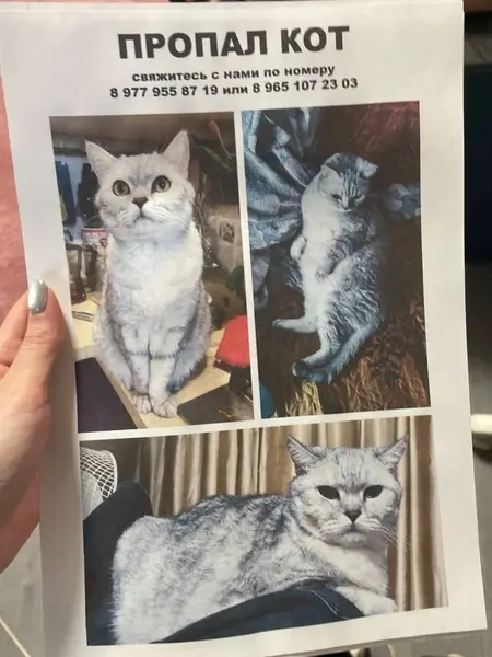 Найден котик на территории КИЗ "Золотая Антилопа", был снят с ветки высокой березы,со слов очевидцев животное находилось на дереве несколько дней, порода шотландский прямоухий, светло-серого окраса , кастрированный, на вид 2-2.5 года.