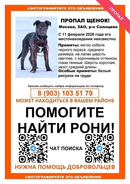 Найдена собака в Раменском с белым пятном на хвосте