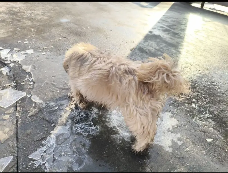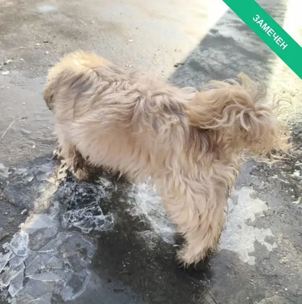 Кобель. Светлый, длинношёрстный. Легко идёт к людям. Ласковый.