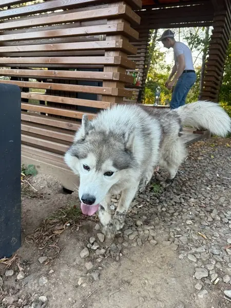 Сибирский Хаски, кобель. Окрас серо- белый, глаза голубые, кличка Вальс. Не агрессивен, но осторожен к чужим. Подходит не ко всем. Убежал с участка по адресу: МО, Раменский р- н, с. Новое и не вернулся. Поиски по окрестностям успеха не принесли. Может находится где угодно. В момент побега на нем был ошейник цвета хаки и карабин. Так же имеет клеймо и чип. Нашедших очень просим придержать или сразу сообщить о его местонахождении.