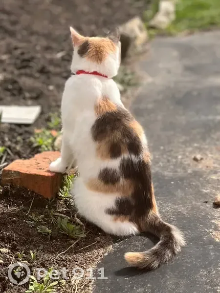 Кончик хвоста рыжий, на носу царапина ближе к левому глазику, была в красном ошейнике. У кошечки узкий таз, поэтому задние лапки при походке очень близко друг к другу. Когда сидит, переваливается на одну сторону из-за таза. Кошка очень ласковая, разговорчивая, кокетка, могла очаровать, поэтому не исключаем возможности, что ее кто-то забрал из дачников.