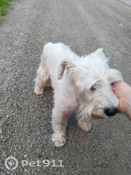 Найдена терьеристая собака, белый окрас (п. Рассоха, Свердловская область) Найдена небольшая собака, бежала по дороге перед машинами в районе п. Рассоха. Попросили придержать охранников на въезде в коттеджный посёлок, купили еды на первое время. С виду домашний, контактный, чистый, но в собаках совсем не разбираемся.