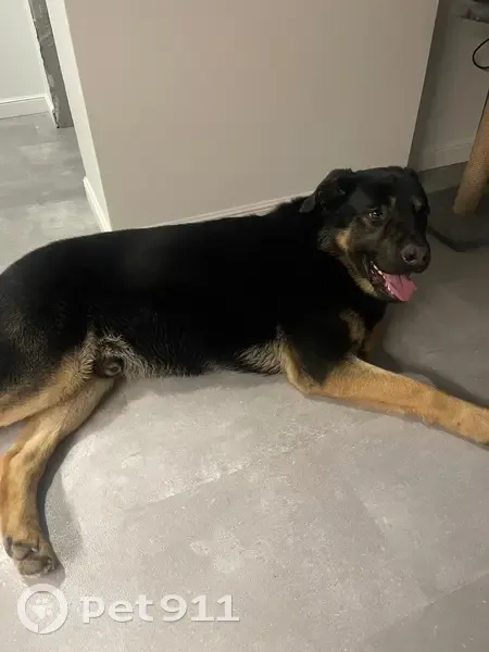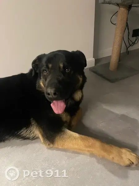Собака похожа на овчарку, только ушки не стоят. Черно- палевый окрас. Очень ласковый, ухоженный.