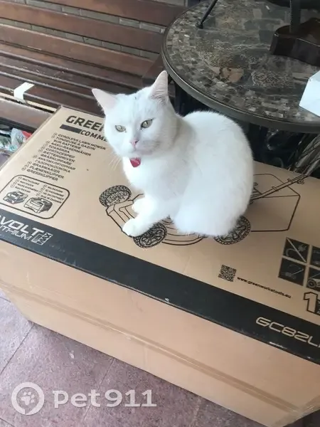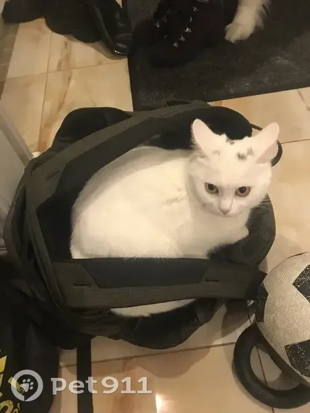 Белая, некрупная, не пушистая, на голове два черных штриха, на хвостике тоже. Не вернулась с прогулки. Могла запрыгнуть в чью-то машину и уехать далеко. Похожую кошку видели в Твери.