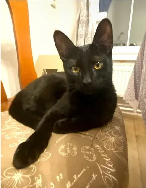 Похожа на бурму, но всей видимости шерсть стриженная. Уши стоячие, глаза большие, зелено-желтые. Миниатюрного телосложения с длинным и тонким хвостом. Ласковая и любит гладиться, но на руках долго не сидит. Дружелюбная. Шли с собакой, она вышла к нам из кустов, терлась у ног и мы её забрали.