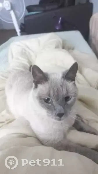 Светло-серый на концах лап, квоста и мордачки томно-серый. Отзывается на имя Феликс, ласковый идёт на контакт. На левой части рта нет 2х клыков. Глаза голубые