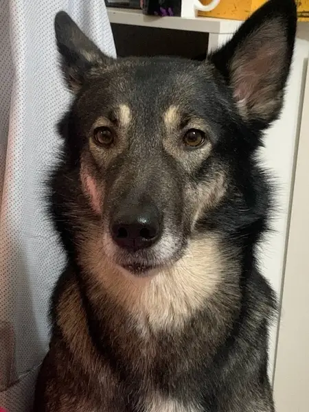 Утром 2 января увидели на крыльце в кресле. Контактная , с ошейником( кожа, потертая) Пробовали увести с территории, возвращается обратно. На территории СНТ тоже есть собаки, была небольшая стычка. Хозяин найдись . +7(926)060-62-14
