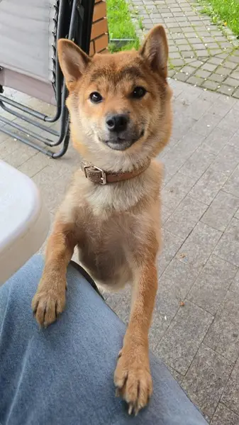Рыжая девочка, без клейма, без чипа. Около 7 лет. Помесь шпица и Сиба-ину. Бежала 07.12.2024 по Колужскому шоссе в сторону Троицка, между Коммунаркой и д. Десна