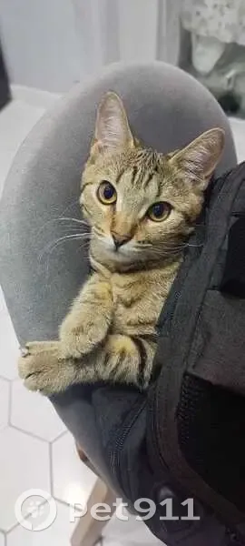 Потерялась бенгальская кошка, зовут Шани. Глаза желтые, окрас серебристо-рыжий, ласковая, на шее был желтый ошейник с лапкой, на котором были кличка питомца и телефоны, по которым позвонить в случае потери. Выбежала из дома 5 июля, в подъезде не нашли. Возраст 8 месяцев, ласковая, добрая, домашняя. Ребенок очень скучает по ней и ждет, что мы сумеем ее найти и вернуть домой