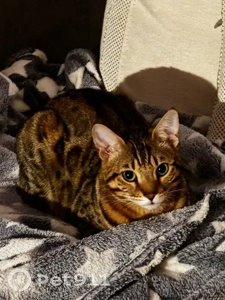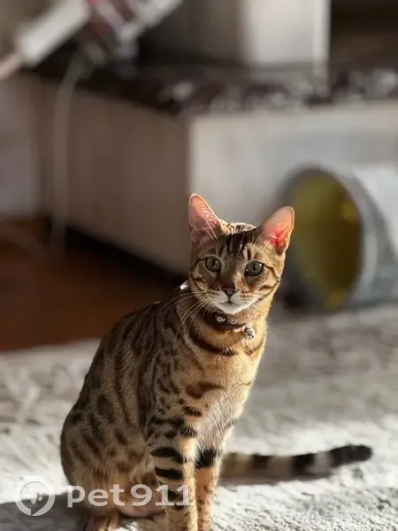 Котя ушел гулять в 21:00 и должен был как обычно вернутся через 1-1,5 часа, но этого не произошло. Мы подождали еще час (звали его через каждые 10-15 минут) он не отзывался. На его шее светоотражающий ошейник с колокольчиком. Он бенгал , очень боится незнакомых людей и громких звуков , с чужих рук не кушает и не подходит. Он никогда раньше не пропадал, всегда приходил домой после того, как погуляет. Он кастрирован , привет все есть у него. Он безобидный кот, очень ласковый и любвеобильный. Бенгал , зеленые глаза , у него на нижней губкой под левым клыком шрам малюсенький , голове пузо. До 02:00 искали его по своему поселку - не отзывался , продолжили утром с 9:00 до 15:40 - не отзывался. Я прошлась везде и звала его всюду , но он не отзывался. Прошу, помогите