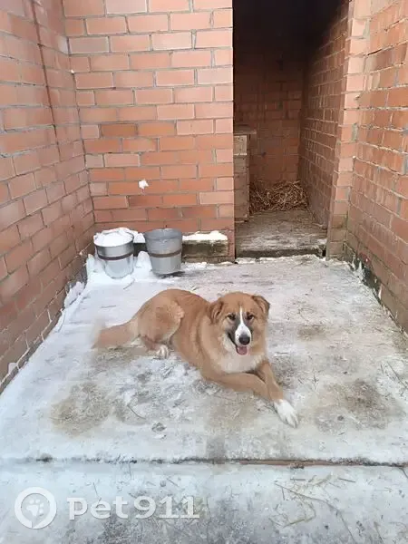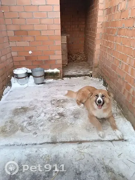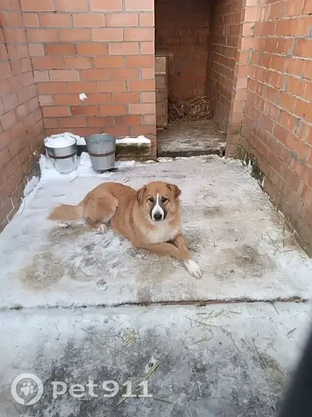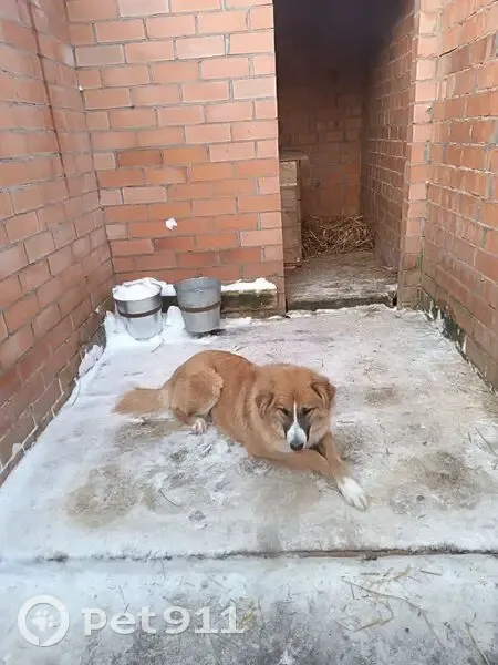 Шерсть густая, длинная. Цвет персиковый. На мордочке, от носа к глазам, белая полоска. Белый лапки. Грудка белая.. Уши закрытые "конвертиком". Хвост пушистый, с белым кончиком. Рост средний. Вес до 30 кг.